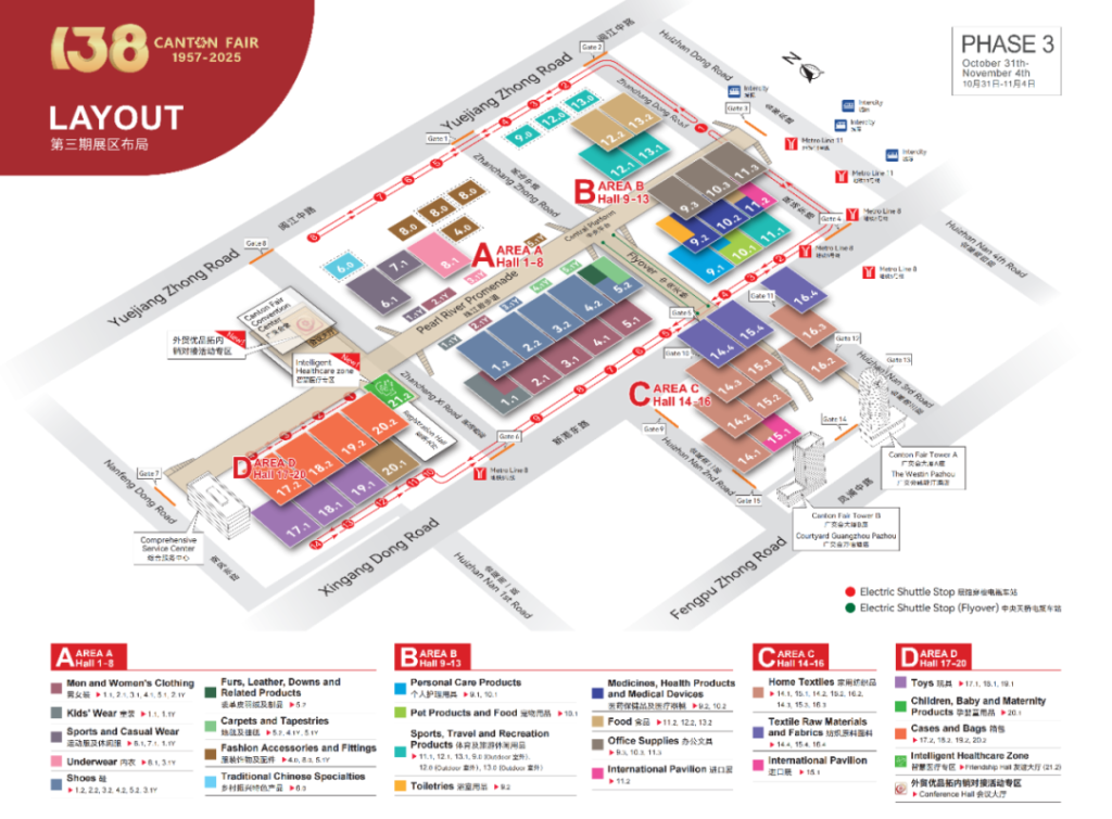 Canton Fair Phase 3 Kicks Off Oct 15 — Unlock the Full Exhibition Map Now to Pinpoint Your Sourcing Targets! (Click to Enlarge & Save) Phase 1: Advanced Manufacturing Phase 2: Quality Home Phase 3: Better Life Category: UnclassifiedBy wordpress2025-10-09Leave a commentPost navigationPreviousPrevious post:The 138th Canton Fair Service Robot Zone: Three Highlights PreviewedNextNext post:【Report】The 138th Canton Fair IPR Protection Guide is coming!More Articles【Report】The 138th Canton Fair IPR Protection Guide is coming!2025-10-10The 138th Canton Fair Service Robot Zone: Three Highlights Previewed2025-09-30Announcement on the Participation of Chinese Accompanying Personnel for Overseas Buyers at the 138th Canton Fair2025-09-28Over 31,000 Exhibiting Enterprises Benefit as 138th Canton Fair Intensifies Support for Market Expansion2025-09-26Connect Global Business Opportunities and Empower Efficient Procurement: BSR Offers Comprehensive Trade Services at the Canton Fair2025-09-26广交会境内采购商注册丨Free Certification Quotas for Domestic Buyers at the 138th Canton Fair is Coming!2025-09-16