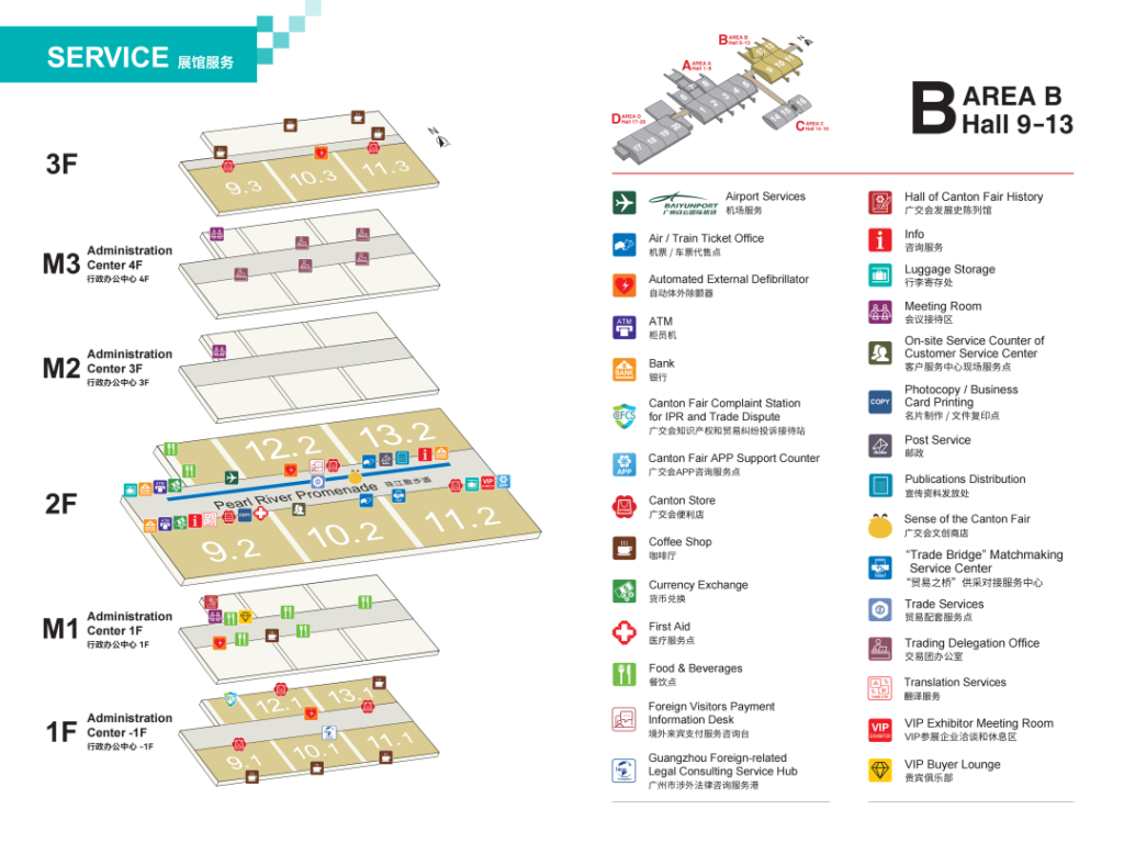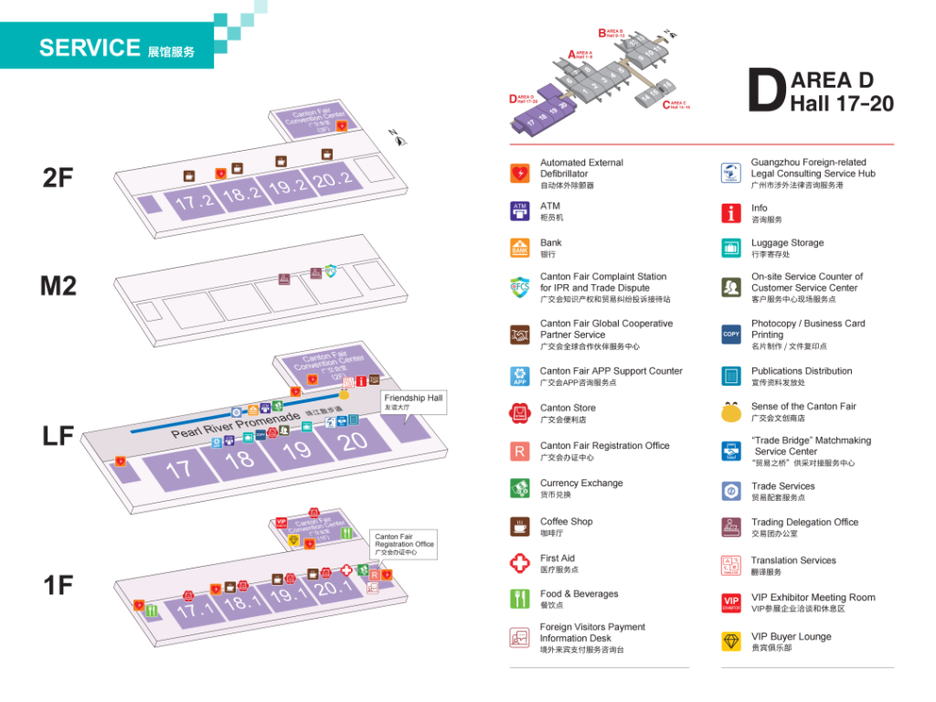 Open the guidebook to quickly identify key areas – it clearly marks the distribution of various zones tailored to the product categories featured in Phase 2. On-site services within the complex are listed clearly, ensuring a worry-free visit!